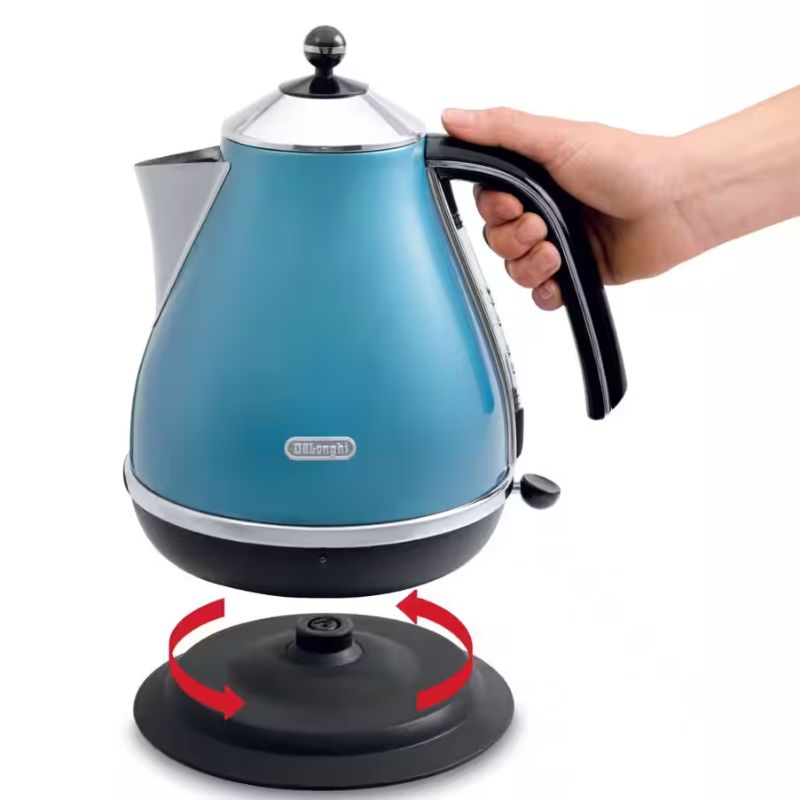 Ấm đun nước Delonghi KBO2001 nổi bật với gam màu xanh da trời tinh tế, bề mặt bóng kết hợp các chi tiết mạ crôm sang trọng. Với công suất mạnh mẽ 2000W, ấm đun sôi nước nhanh chóng, giúp tiết kiệm thời gian và điện năng cho gia đình.