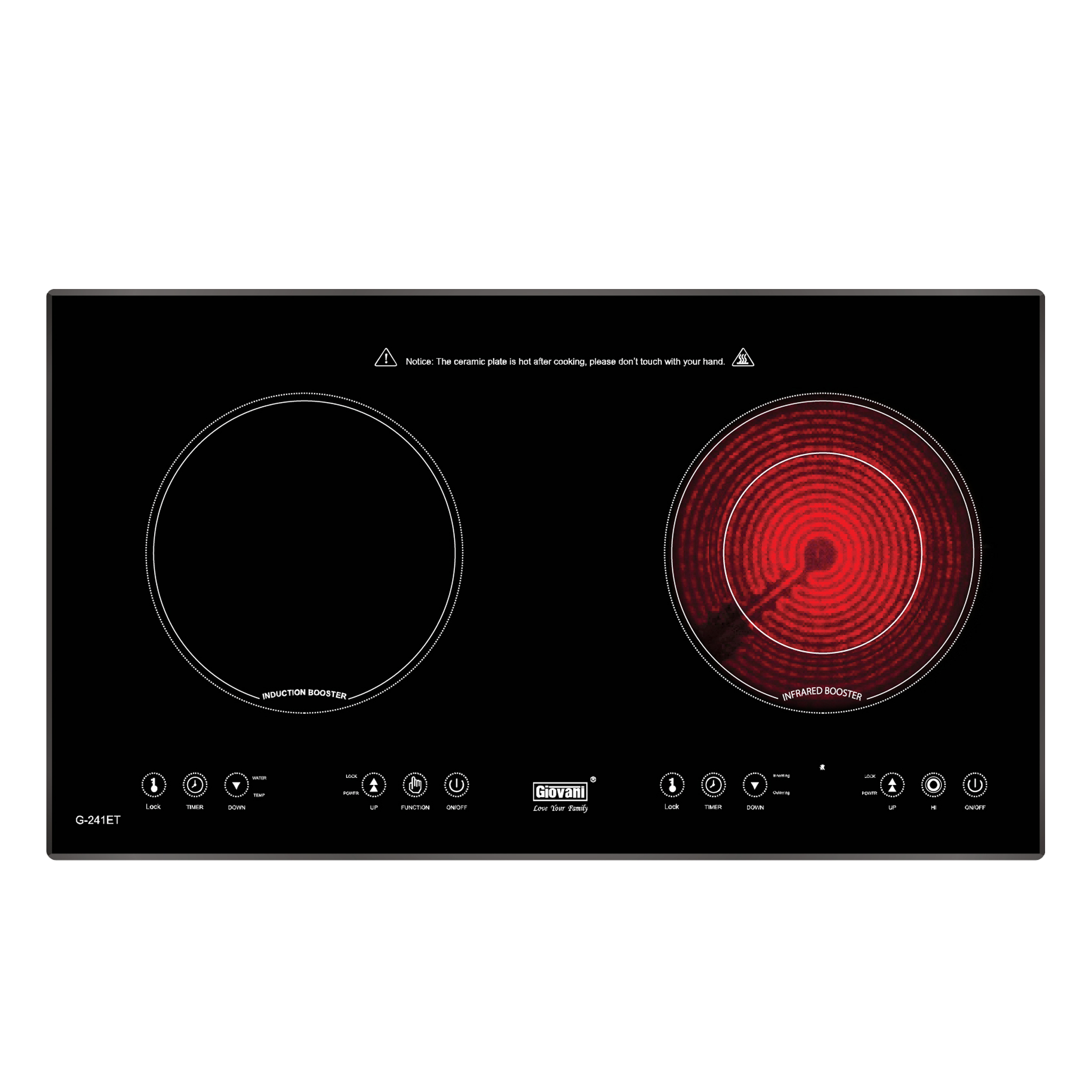 Bếp điện từ Giovani G-241 ET là dòng bếp hỗn hợp 1 điện + 1 từ, mang lại sự linh hoạt khi nấu nướng với cả nồi thường và nồi từ. Sản phẩm có thiết kế hiện đại, mặt kính Ceramic chịu nhiệt bền bỉ cùng các tính năng an toàn, đáp ứng tốt nhu cầu sử dụng trong gia đình.