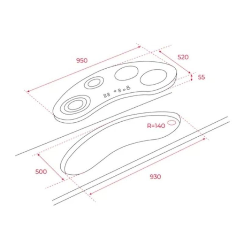 Kích thước mặt kính | 950 x 520 x 55 |