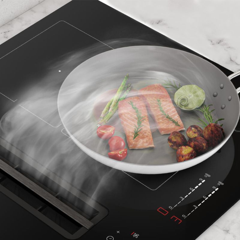IndyFlex+ mở rộng vùng nấu: Kết hợp 2 vùng bên trái thành một vùng lớn, tối ưu cho nồi chảo kích thước lớn, truyền nhiệt đồng đều.