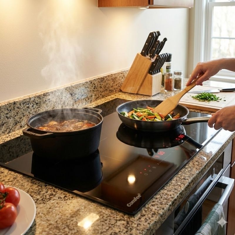 Bếp từ đôi lắp âm Comfee CIH-40DHE được trang bị công nghệ AI Inverter tiên tiến, mang đến khả năng vận hành ổn định, tiết kiệm điện năng và nâng cao trải nghiệm nấu nướng hằng ngày. Với khả năng kiểm soát công suất thông minh, bếp giúp quá trình chế biến trở nên nhẹ nhàng, êm ái và hiệu quả, đáp ứng tốt nhu cầu sử dụng của gia đình hiện đại.