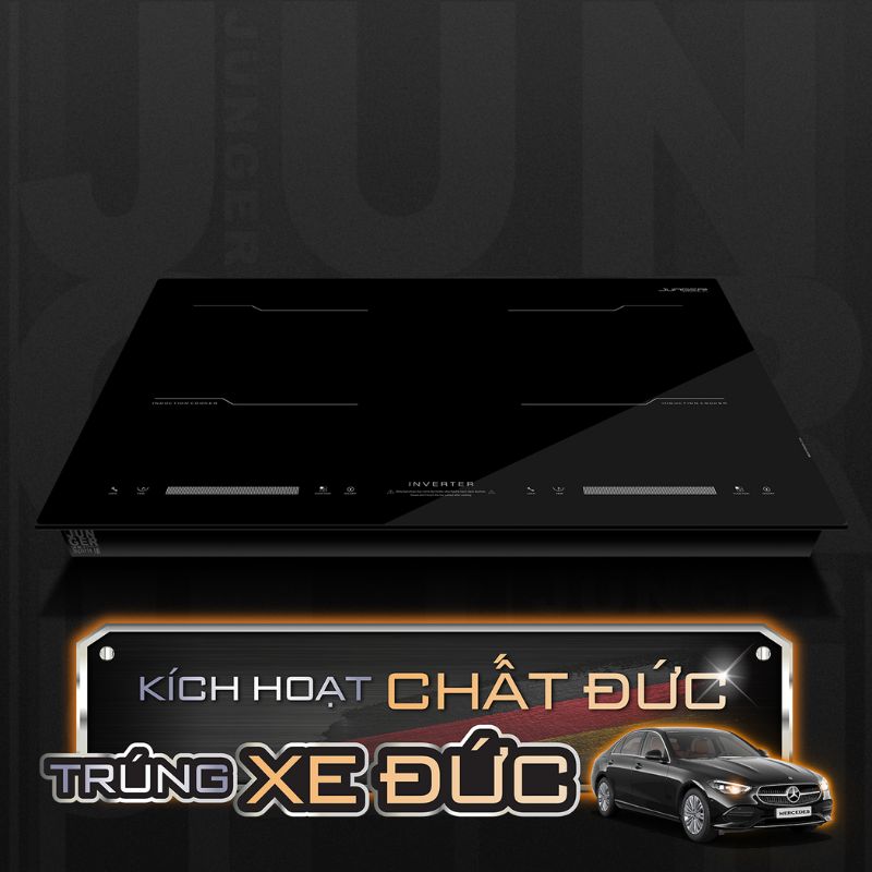 - Chất liệu mặt bếp kính Ceramic - Junger Đức cao cấp, chịu nhiệt, chịu được va đập mạnh, chống trầy xước, dễ vệ sinh
