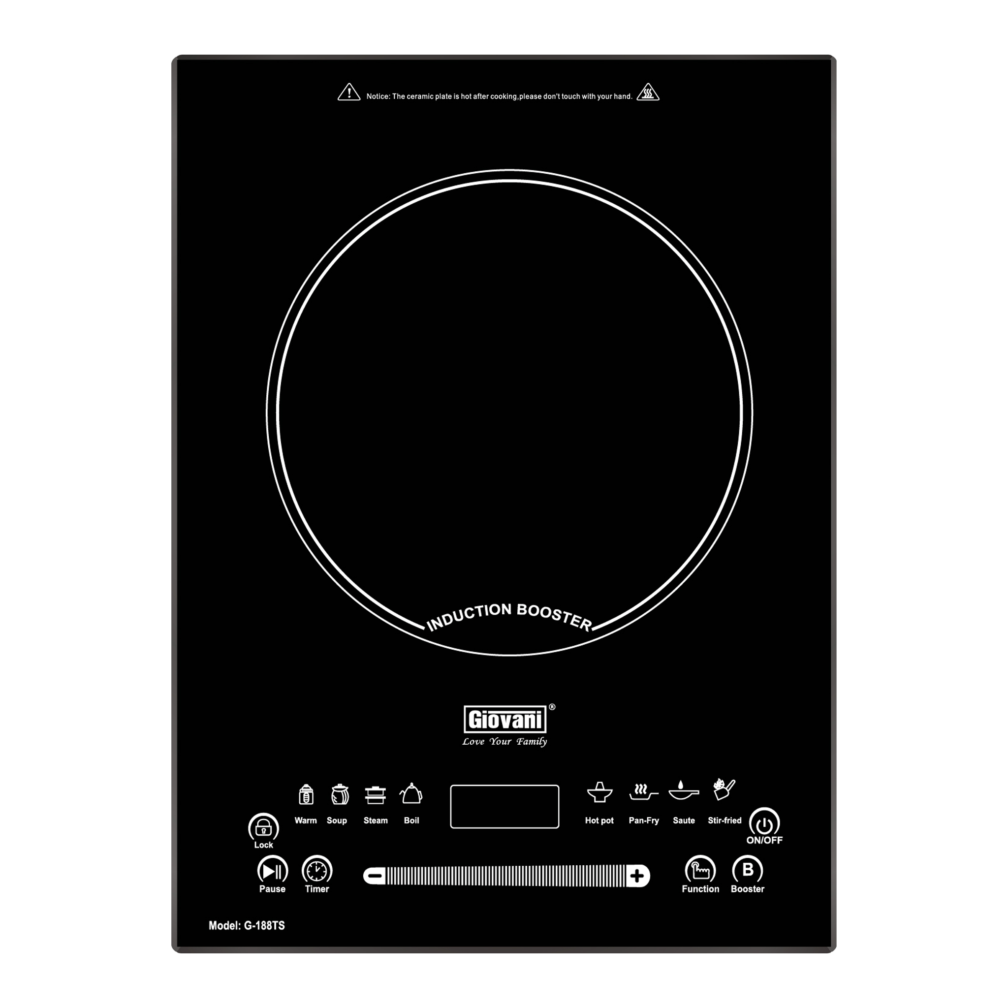 Bếp từ đơn Giovani G-188 TS là lựa chọn tiện lợi cho không gian bếp nhỏ hoặc sử dụng làm bếp phụ. Sản phẩm nổi bật với mặt kính Ceramic chịu nhiệt bền bỉ, điều khiển cảm ứng Slider hiện đại cùng các tính năng an toàn, giúp việc nấu nướng nhanh chóng và dễ dàng hơn.