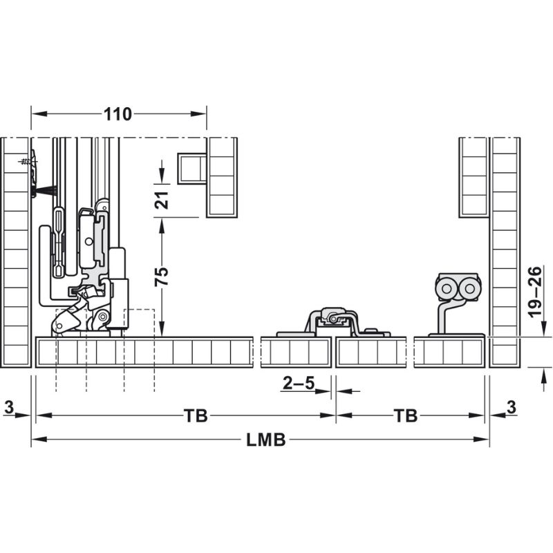 | Thích hợp | Cho 3 cửa kết hợp với Hawa Concepta |