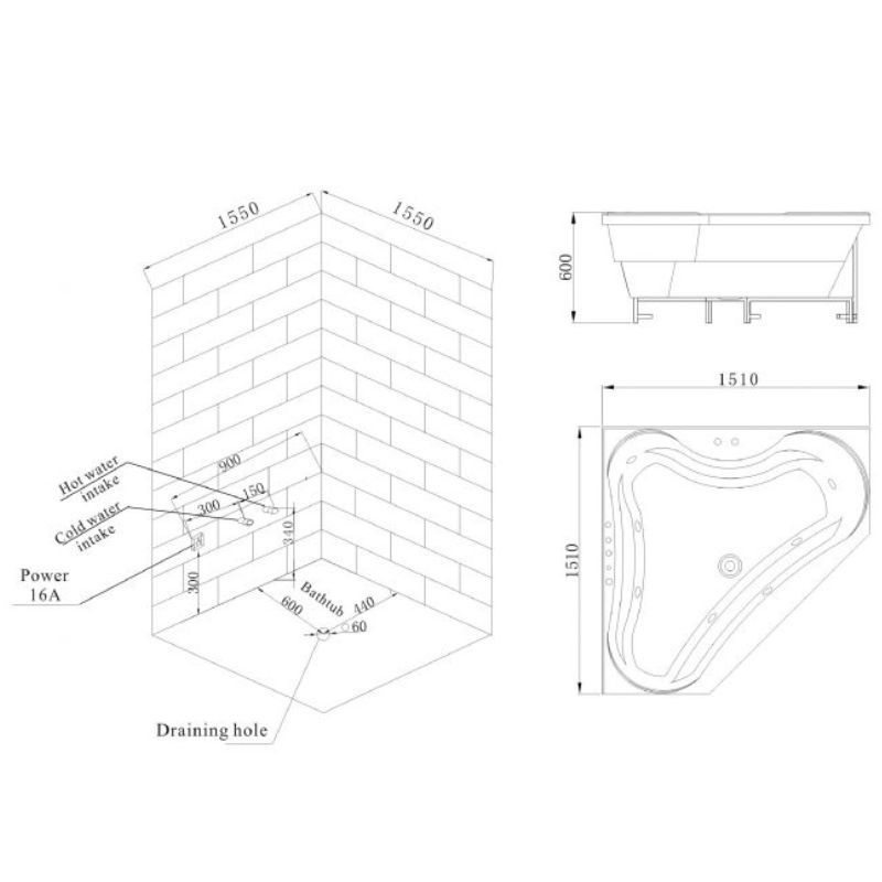 - Kích thước cũng khá nhỏ gọn cho không gian phòng tắm nhà bạn với 1510*1510*690mm. Thiết kế tạo khoảng không gian khá thoải mái cho 2 người cùng sử dụng.