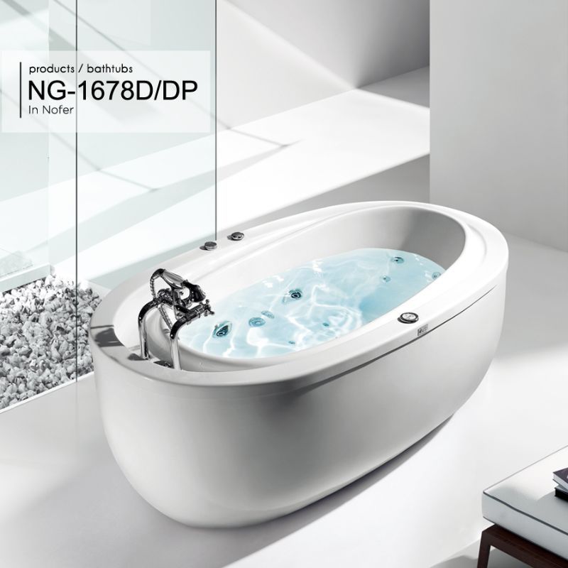 - Một chiếc bồn tắm hình oval sẽ thu hút toàn bộ ánh nhìn say mê từ những ai hướng đến sự mới lạ. Không đi theo lối mòn cũ, bồn tắm massage NG-1678D/DP mang lên mình vẻ ngoài kiêu kỳ, rực rỡ. Tuy vậy, NG-1678D/DP lại phù hợp tuyệt đối với bất kỳ loại hình phòng tắm nào, thời trang nhưng không hề kén chọn, từ cổ điển đến sang trọng đều có thể sử dụng được. Không ngoa khi nói bồn tắm massage NG-1678D/DP nhìn tựa như một viên ngọc quý mang màu trắng tinh khiết có thể làm xiêu lòng người đối diện.
