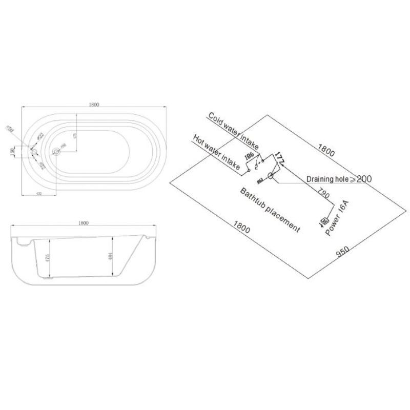 - Kích thước của bồn theo chiều dài*rộng*cao lần lượt sẽ là 1800*950*680 mm sẽ vừa vặn một người sử dụng thoải mái cũng như không chiếm quá nhiều diện tích trong phòng tắm, nhỏ gọn và tinh tế.