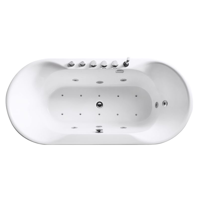 - Dưới đáy bồn tắm có trang bị 10 mắt sủi khí tạo nên các bọt bong bóng nước li ti cung cấp thêm oxy cho bồn và làn da. Sủi bọt khí ở mức 300W giúp cơ thể đào thải độc tố, da dẻ mịn màng, khoẻ đẹp từ bên trong.