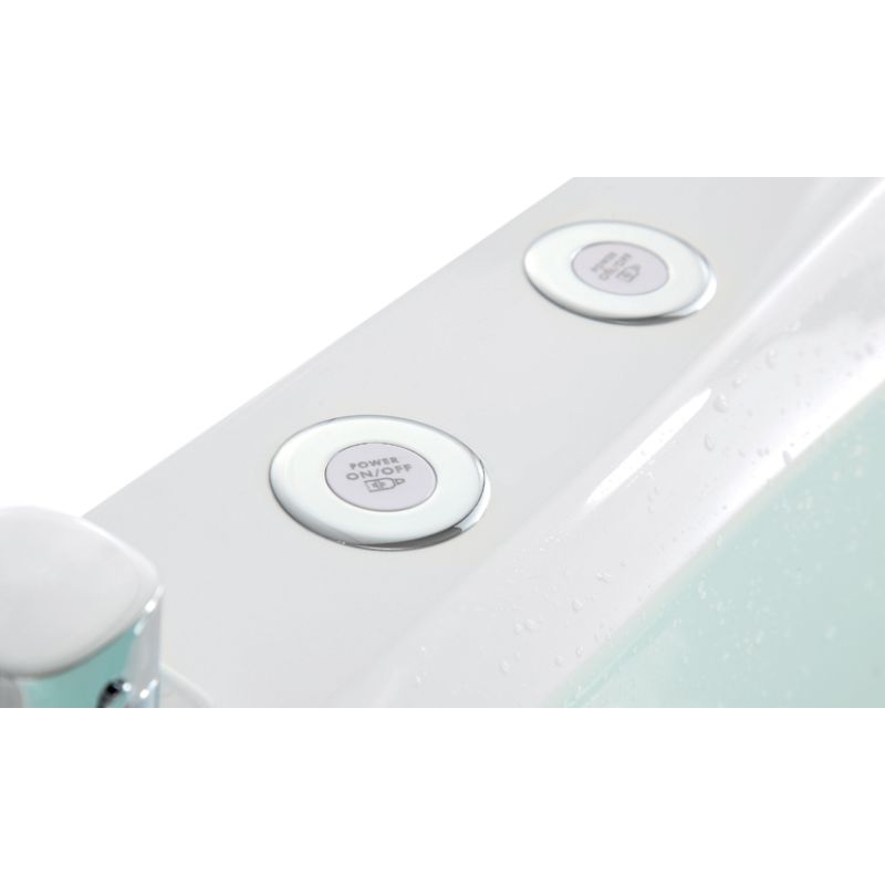 - Hệ thống nút nguồn ON/OFF và các nút điều chỉnh chế độ nước ở các mắt sục và sủi khí của bồn tắm massage được thiết kế mạ crom nằm phẳng trên thành bồn. Mang đến cảm giá dễ chịu, nhẹ nhàng khi sử dụng và giữ lại vẻ đẹp tổng thể cho bồn tắm.