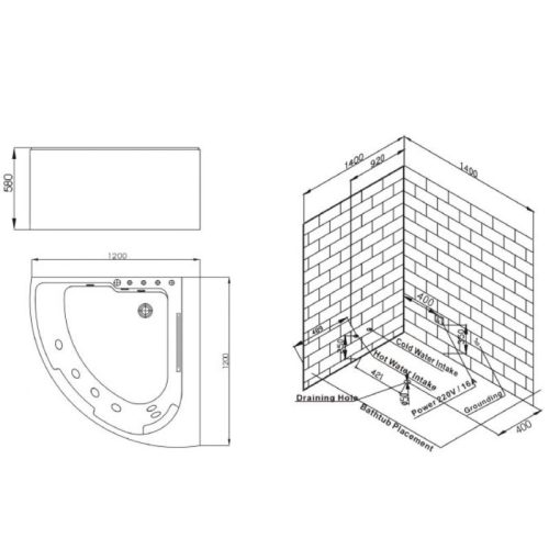 - Thiết kế dạng góc giúp tận dụng tối ưu không gian. Ở thiết kế này bồn tắm có thể được lắp tại các góc của nhà tắm. 2 mặt giáp tường, mặt còn lại