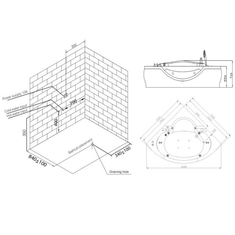 - Bên cạnh đó cũng được bố trí sen tay và vòi cấp nước. Vòi cấp nước là nguồn cung cấp nước chính cho bồn tắm massage. Sen tay mang đến cho người dùng sự linh động và tiện lợi nhất.