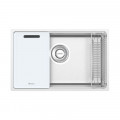 - Thiết kế gờ hạ bậc tinh tế hạn chế tràn nước, đi kèm phụ kiện siphon và rổ phụ tiện lợi nằm dọc thành chậu, di chuyển dễ dàng, chuyên dùng để đựng các vật dụng nhỏ như bùi nhùi, nước/mút rửa bát.