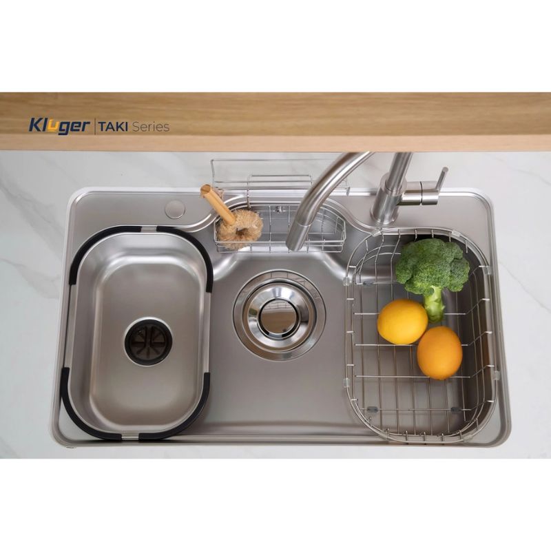 Chậu rửa bát Kluger KT8050SL Plus (phiên bản thêm phụ kiện) thuộc bộ sưu tập TAKI Series chủ đề “SỰ HOÀN HẢO TRONG TỪNG ĐƯỜNG CONG”, mỗi chi tiết trên chậu rửa đều phản ánh sự cẩn trọng và tinh tế trong thiết kế, từ đường cong mượt mà đến bề mặt Super LINEN hay bộ siphon mang đặc trưng của người Nhật. Sự hoàn hảo được thể hiện không chỉ trong vẻ ngoài mà còn trong chất lượng và tính tiện ích của sản phẩm.