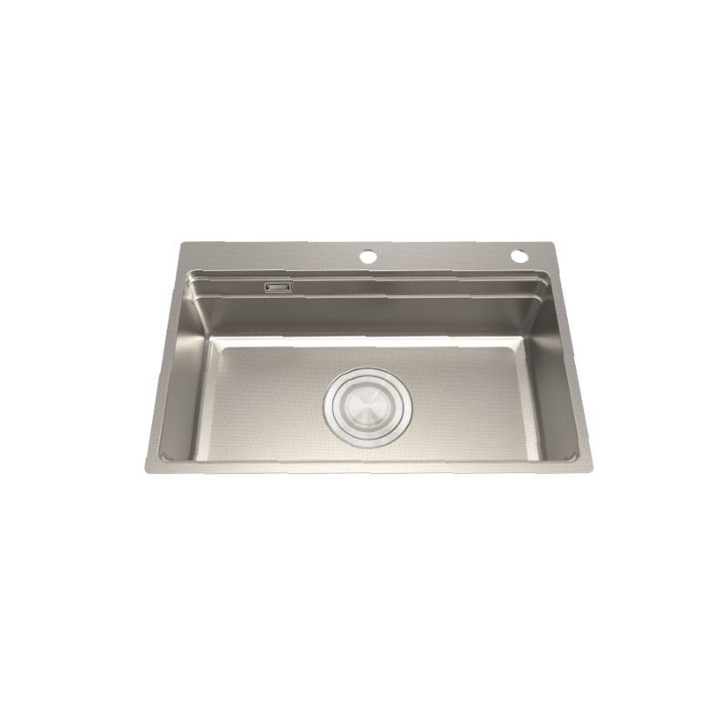 Thiết kế 1 hộc rộng rãi, tối ưu không gian: Chậu được thiết kế một hộc lớn không có bàn chờ, giúp tập trung toàn bộ không gian cho việc rửa và sơ chế thực phẩm, tạo sự gọn gàng và hiện đại cho mặt bếp.