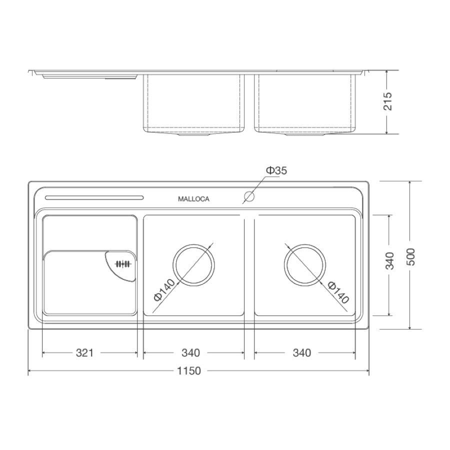 Chậu rửa chén Malloca MS8816N là dòng chậu inox cao cấp với thiết kế hiện đại, phù hợp cho nhiều không gian bếp gia đình. Sản phẩm sở hữu kích thước 115 cm cùng thiết kế 2 hộc rửa rộng rãi, giúp người dùng dễ dàng phân chia các thao tác như rửa chén, sơ chế thực phẩm hoặc tráng dụng cụ nhà bếp. Được chế tạo từ thép không gỉ inox 304, chậu có độ bền cao, khả năng chống gỉ sét và giữ được bề mặt sáng bóng theo thời gian, góp phần mang lại sự tiện nghi và sang trọng cho gian bếp.