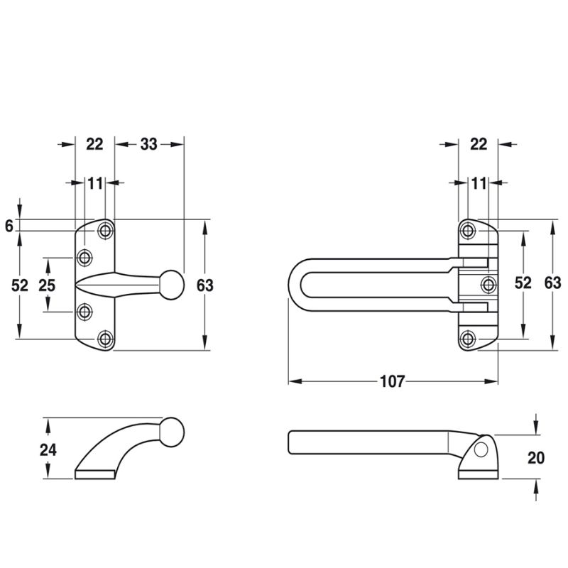 | Loại sản phẩm | Chốt an toàn cho cửa, dạng gài |