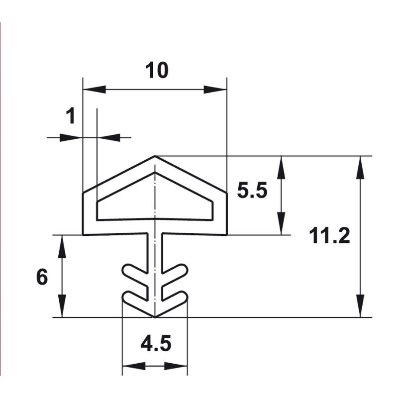 Đệm khí cho cửa Hafele 950.51.200 – phụ kiện ron đệm khí cao cấp bằng nhựa TPE, chiều ngang 10 mm và chiều dài cuộn 25 m, giúp ngăn khí lạnh, bụi, gió và côn trùng, giảm ánh sáng lọt qua khe cửa và tăng hiệu quả cách âm cho các loại cửa đi và cửa thông phòng.
