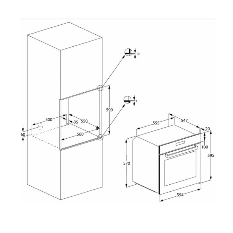 - Thiết kế âm tủ chuẩn 60cm: Kích thước 595 x 594 x 567 mm, lắp đặt gọn gàng, tối ưu không gian và tăng tính thẩm mỹ cho căn bếp.