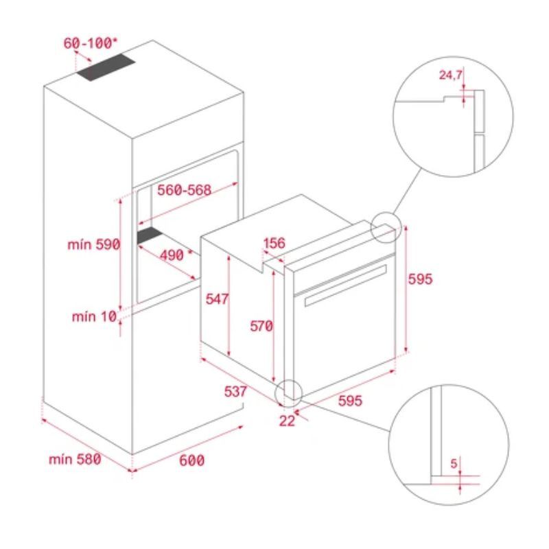 Kích thước tổng thể (Cao × Rộng × Sâu) | 595 × 595 × (537 + 22) mm |