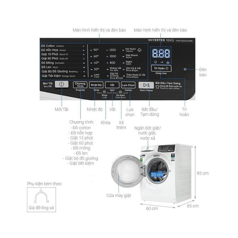 | Tiện ích | Hẹn giờ, khóa trẻ em, tiết kiệm điện nước |