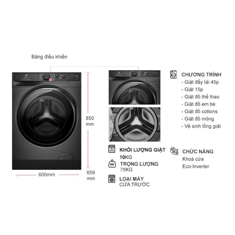 - Động cơ EcoInverter: Vận hành êm ái, tiết kiệm điện năng, bền bỉ.