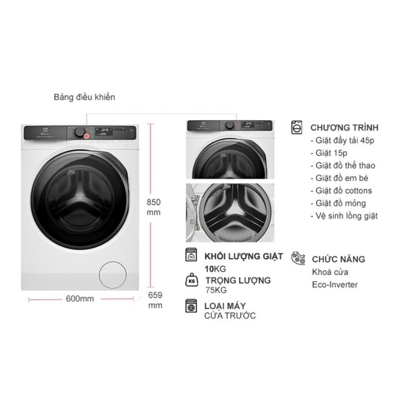 - Động cơ EcoInverter: Vận hành êm ái, tiết kiệm điện năng và tăng tuổi thọ máy.