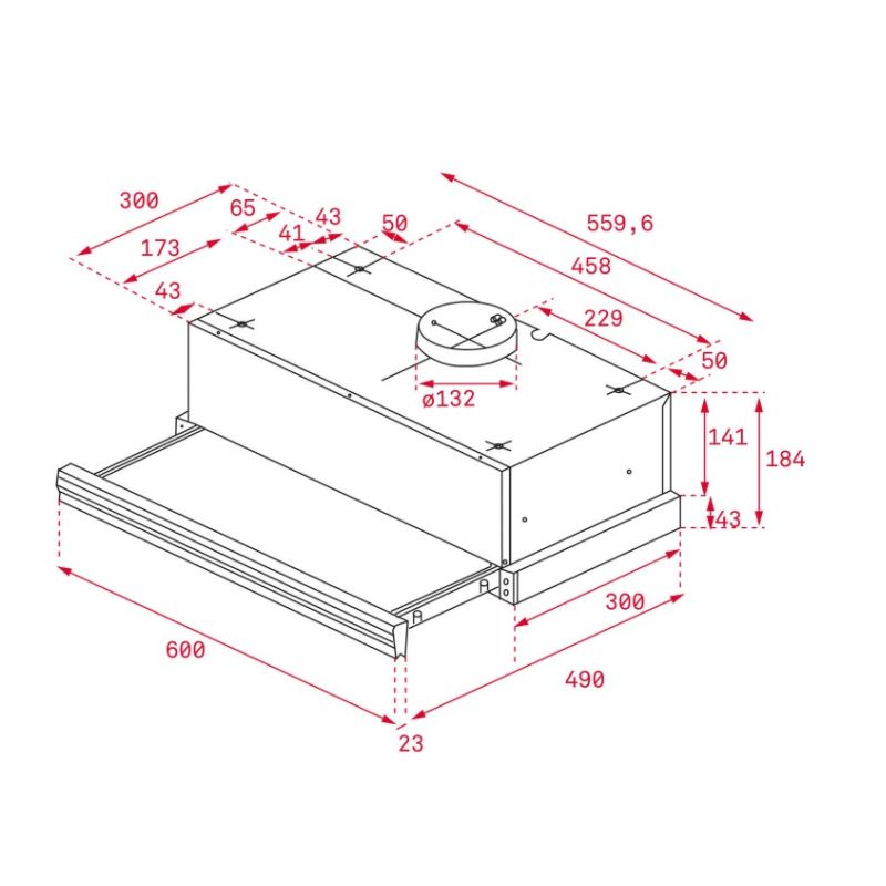 Kích thước (C x R x S) | 184 x 600 x (300 – 490) mm |