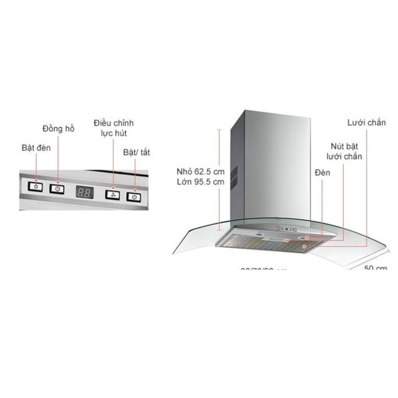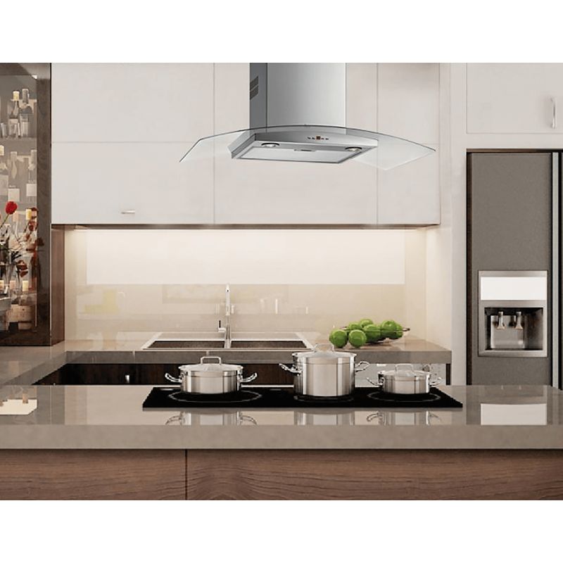 Thiết kế tinh tế: Kích thước ngang 90cm phù hợp cho các gian bếp rộng, kết hợp inox sáng bóng chống bám vân tay, dễ lau chùi.
