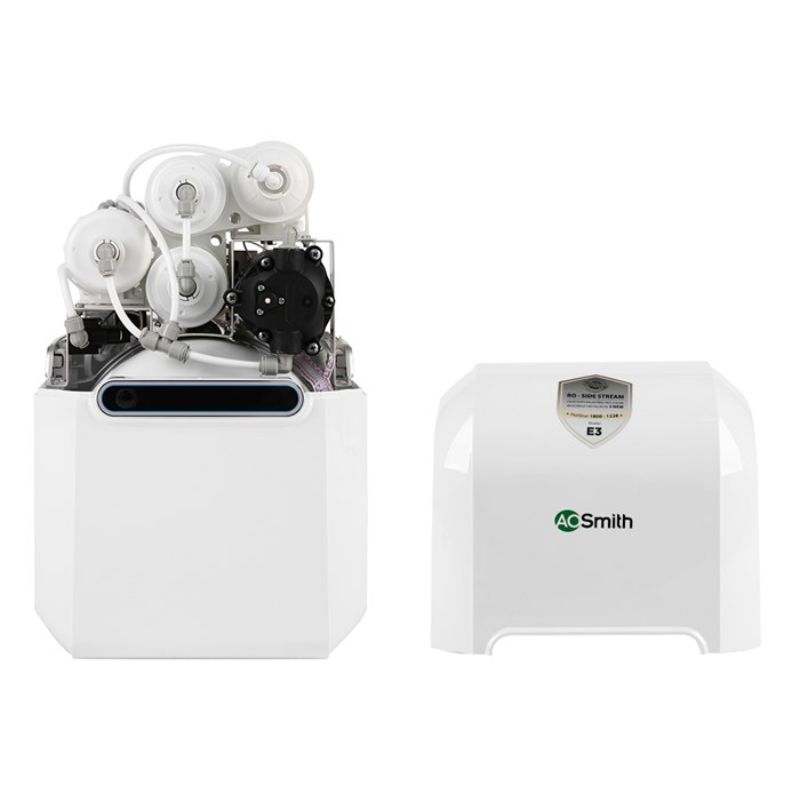 Máy lọc nước RO A.O. Smith E2 trang bị hệ thống 5 lõi lọc hiện đại kết hợp công nghệ RO – Side Stream độc quyền và Min-Tech bổ sung khoáng chất, giúp loại bỏ hiệu quả tạp chất, vi khuẩn, kim loại nặng đồng thời cân bằng pH và giữ vị nước tự nhiên.