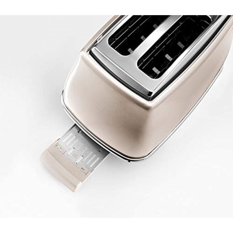 Máy nướng bánh mì De’Longhi CTOT2003.BG nổi bật với thiết kế tinh tế màu be sang trọng, thuộc dòng Icona Metallics đặc trưng, mang đến vẻ hiện đại và độc đáo cho gian bếp. Sản phẩm trang bị khe nướng rộng, sâu cùng núm điều chỉnh 6 mức độ vàng, giúp bạn dễ dàng nướng bánh mì theo khẩu vị yêu thích.