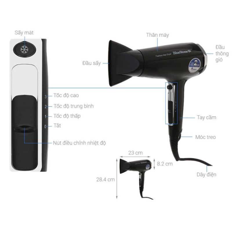 Chức năng sấy mát & ion: Bảo vệ tóc yếu, tóc trẻ nhỏ và giúp tóc bóng mượt.