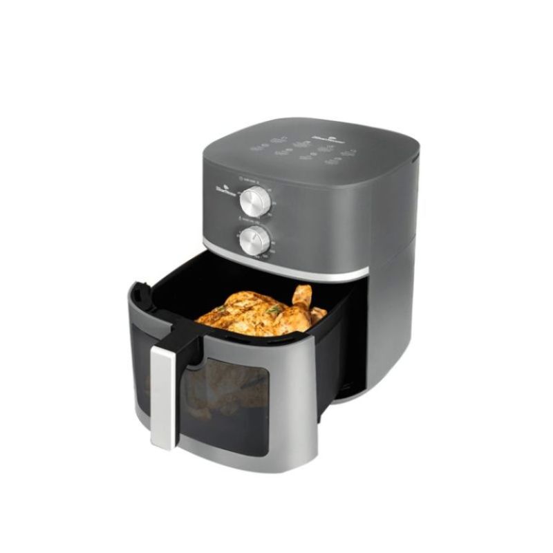 Điều khiển cơ linh hoạt: Nút vặn dễ sử dụng, cho phép điều chỉnh nhiệt độ từ 80 – 200°C và hẹn giờ đến 60 phút, phù hợp với nhiều món ăn khác nhau.