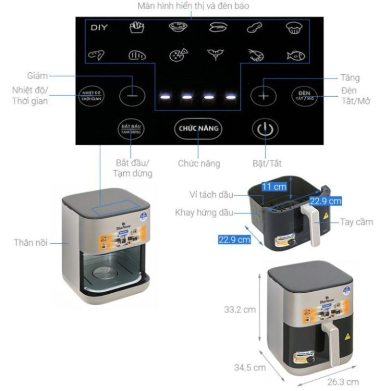 Giảm tới 80% lượng chất béo: Giúp bạn thưởng thức những món chiên nướng yêu thích mà không lo ngại vấn đề về sức khỏe, đồng thời giữ nguyên hương vị và màu sắc tự nhiên của thực phẩm.