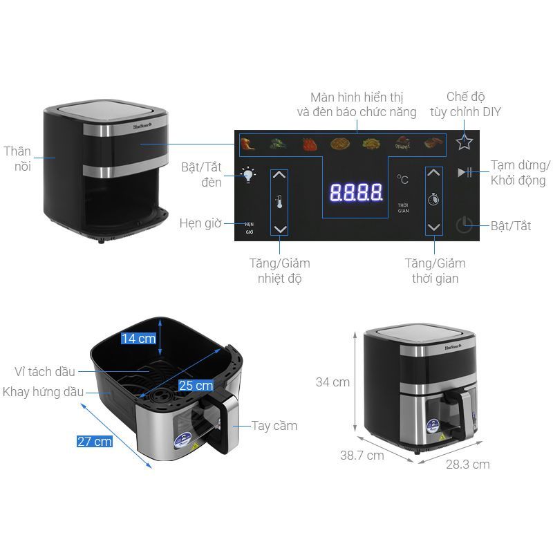 | Chức năng | Chiên không dầu, nướng |
