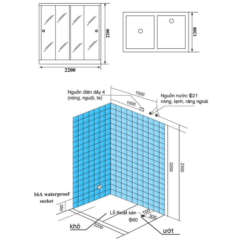 - Với kích thước 2200*1200*2200mm mang đến không gian rộng rãi, thoải mái cho người sử dụng. Ở mỗi bên xông hơi khô hoặc ướt, không gian đủ cho 2 người sử dụng cùng lúc vô cùng thoải mái.