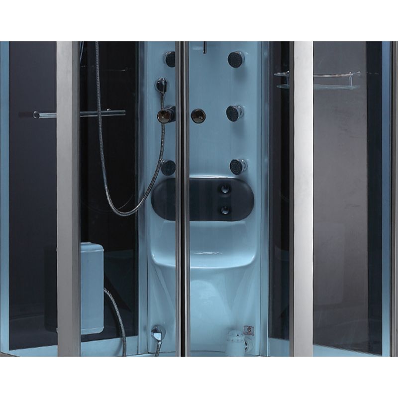 - Các tấm kính được giữ chắc chắn với bộ khung nhôm bạc ánh lên vẻ sáng đẹp màu kim loại. Đồng thời, một mặt bảng nhôm màu trắng ở mặt giáp tường sẽ làm nổi bật lên các chi tiết bên trong phòng xông. Đặc biệt là thiết kế cửa lùa đầy sang trọng, tay cầm chắc chắn, giúp bạn thao tác thật nhẹ nhàng, mà không gây ồn ào.