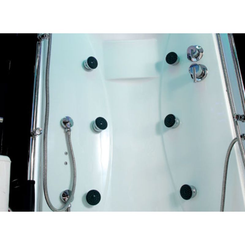 - Tạo điểm nhấn đặc biệt cho phòng chính là thiết kế bồn tắm massage dưới đáy phòng có mặt ngoài là một tấm yếm bằng kính cường lực. Bạn sẽ nhìn rõ được chuyển động bên trong của bồn tắm và cảm nhận được điểm khác biệt thú vị từ bồn đi kèm phòng xông hơi NG-2151 này mang lại.