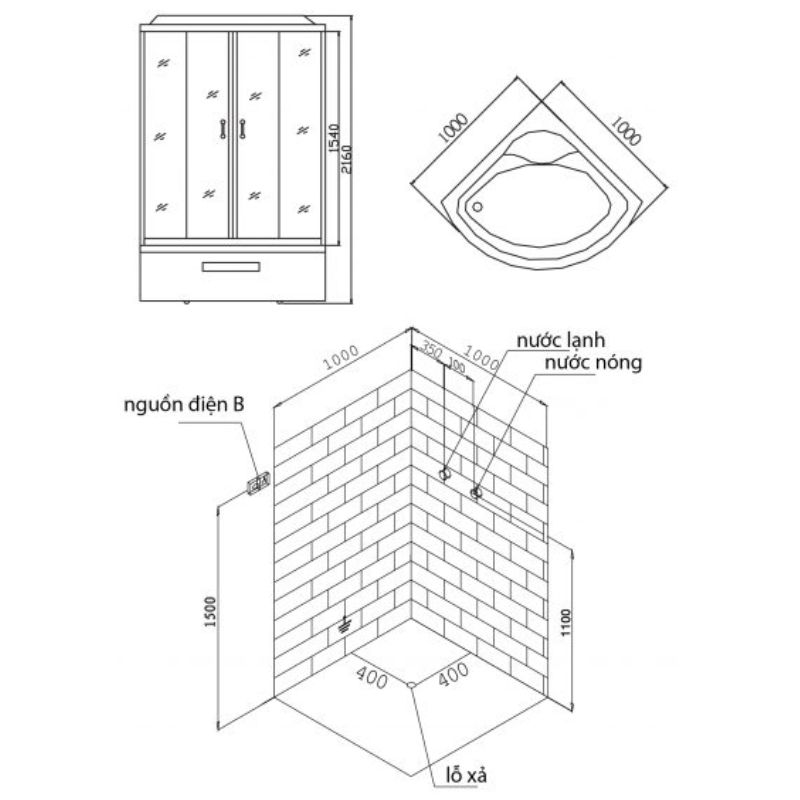 - NG-904 là phòng xông hơi đơn. Kích thước là 1000*1000*2160 mm, thiết kế không gian khá rộng rãi dành cho 1 người sử dụng.