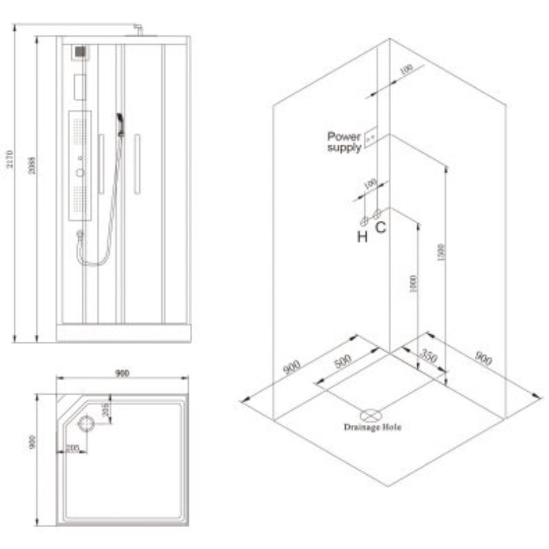 | Kích thước | 900 x 900 x 2170 mm |