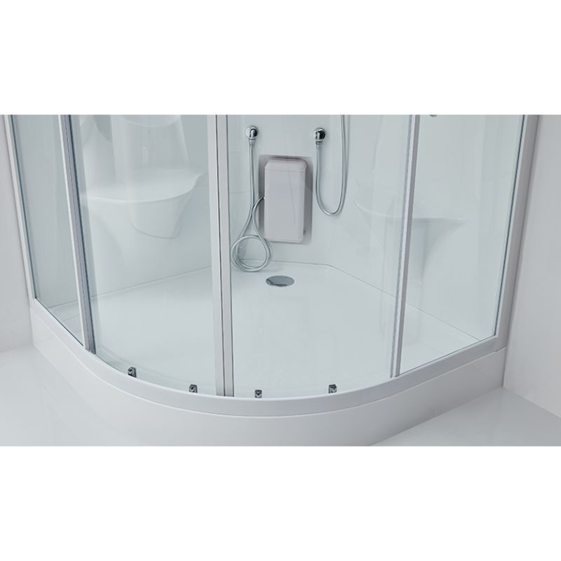- Vật liệu Acrylic cao cấp với ưu điểm như chịu nhiệt, chịu lực cao và bền bỉ qua nhiều năm tháng được ứng dụng làm phần đế và lưng của phòng xông hơi. Màu trắng sáng đến từ lớp vật liệu sẽ giúp phòng xông hơi dễ dàng hòa hợp với nhiều kiểu không gian khác nhau, từ đơn giản đến cầu kỳ.