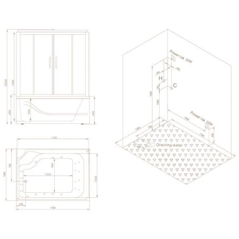 - Kích thước khoảng 1700*1200*2200mm phù hợp cho diện tích phòng tắm lớn và sử dụng cho hai người.