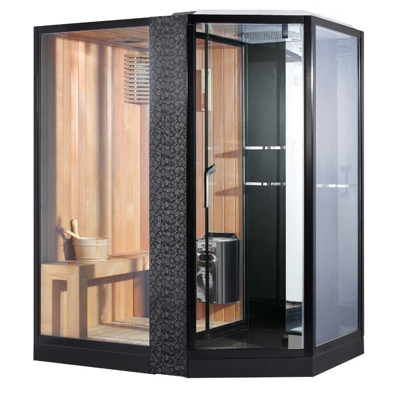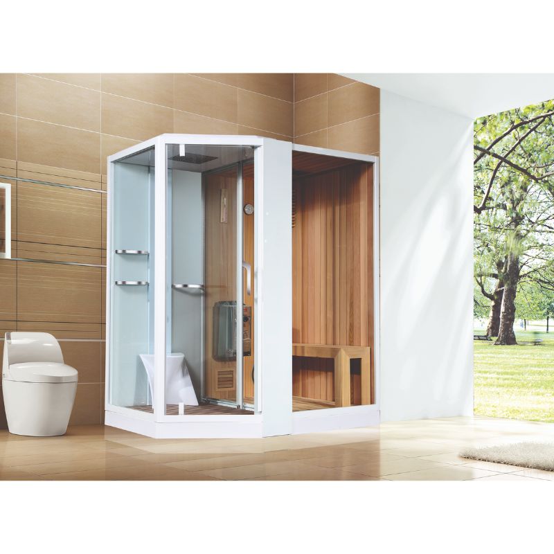 Sản phẩm phòng xông hơi VS-89103S có hai màu là trắng và đen và đây là phòng xông hơi đa năng vì có tích hợp cả xông hơi ướt lẫn xông hơi khô. Hình dáng của phòng xông hơi là hình lục giác, có 5 cạnh, được chia làm 2 phòng tương ứng với từng chức năng.
