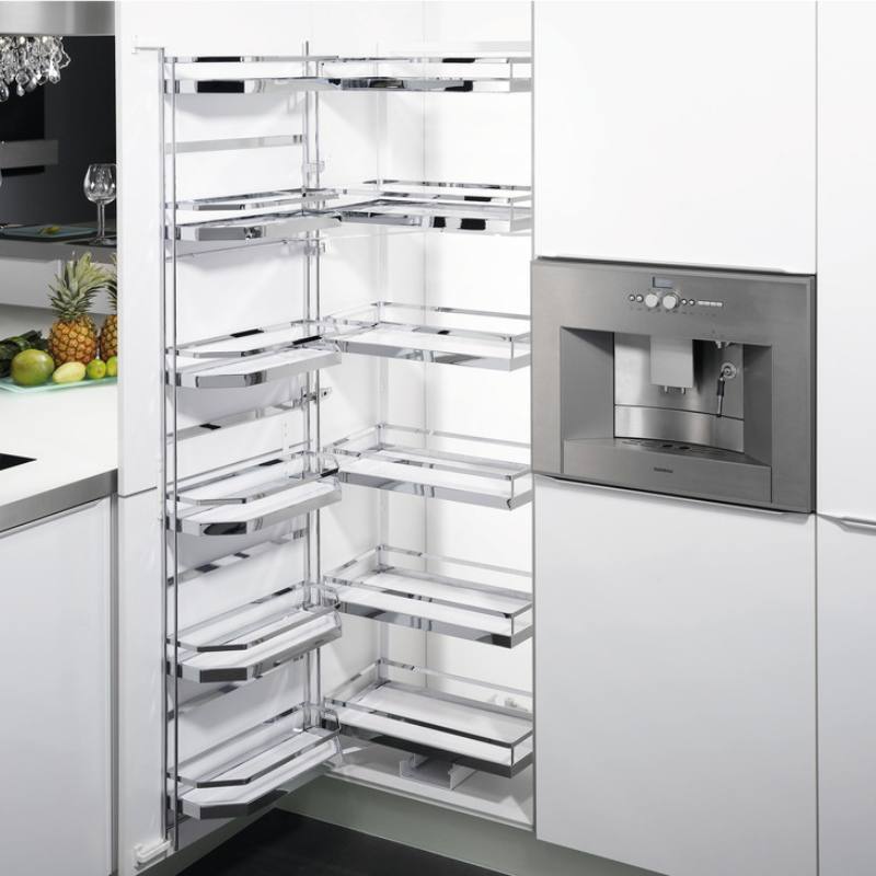 Rổ kéo 6 tầng Hafele mã 545.94.142 là phụ kiện tủ đồ khô cao cấp, thiết kế dành cho khoang tủ rộng 600mm, giúp tối ưu không gian lưu trữ và tăng tính tiện nghi cho căn bếp hiện đại. Sản phẩm gồm 6 khay dạng wire basket (rổ lưới), cho phép sắp xếp thực phẩm, gia vị gọn gàng và dễ quan sát, đồng thời vận hành linh hoạt khi kéo mở.