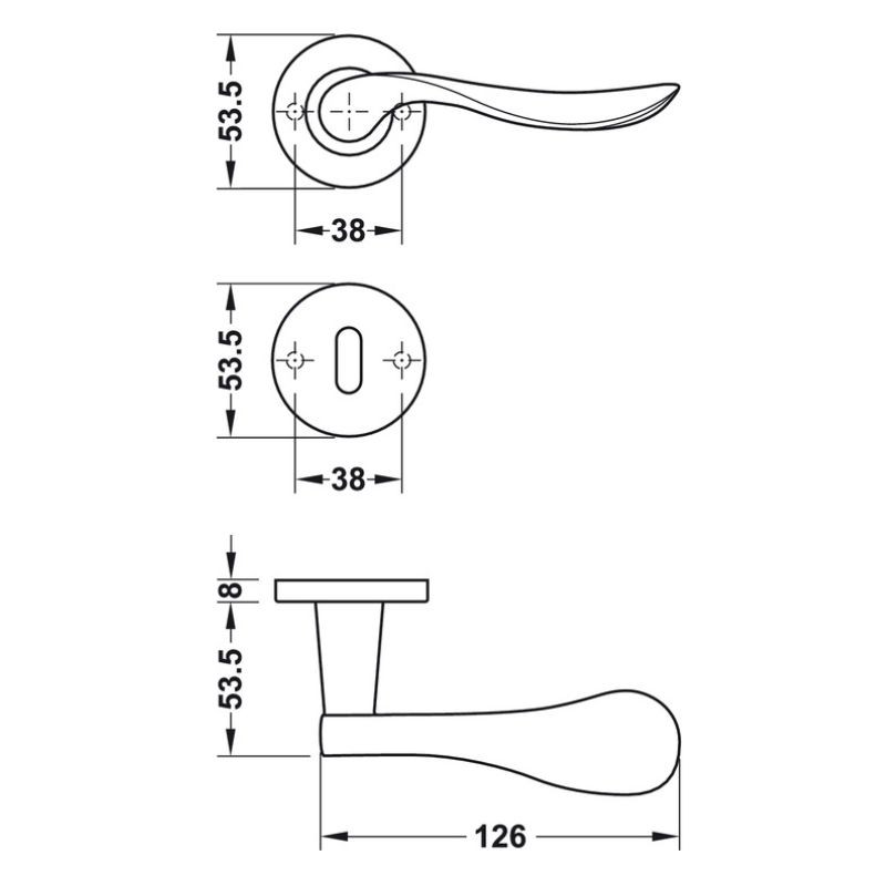 | Loại tay nắm | Tay nắm gạt có nắp che (tay nắm phân thể) |