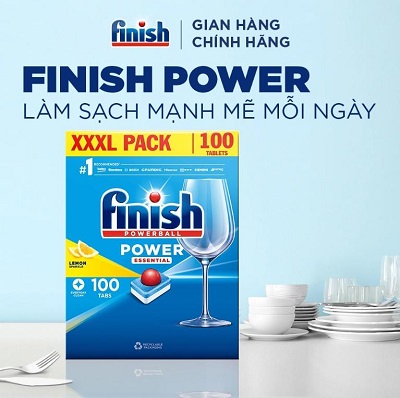 Viên rửa bát Finish Essential 100 viên là dòng sản phẩm nổi bật của hãng. Với tính năng làm sạch sâu bát đĩa đến từng ngóc ngách cùng hương chanh thiên nhiên thơm mát. Đạt chuẩn Châu Âu đảm bảo an toàn cho sức khỏe, thân thiện với môi trường và bảo vệ, gia tăng tuổi thọ máy rửa bát.